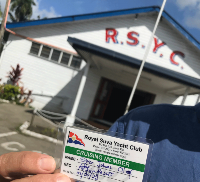 För att komma iland lägger vi jollen vid Suva Yacht Clubs jollebrygga. Det går bra, kostar bara 250 kronor om dagen. What? säger vi och tror att vi hört fel. Eller så kan man bli temporär medlem för 300 kronor i månaden och kan använda jollebrygga, sopkärl, vatten, duschar, bar och restaurang. Matematiken är inte så svår. Vi betalar de 300 kronorna och får ett inplastat medlemskort.