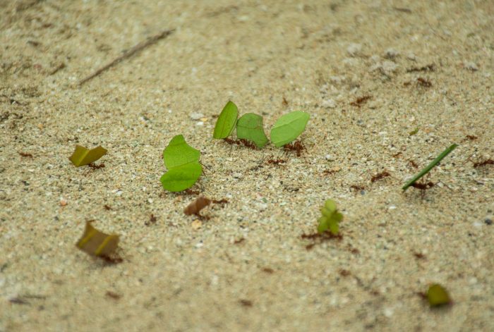 Bladskärarmyrorna har vi träffat på vid flera tillfällen både i den Clombianska djungeln och även här på öarna i Bocas. På långa led marscherar myrorna längst med stigen, bärandes på blad. De verkar synnerligen flitiga och det är lite så vi tänker, att vi själva ska vara, nu när våra gäster åkt hem. Flitiga.