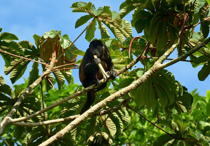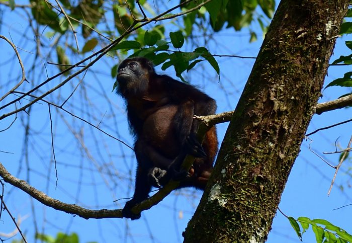 Vid 5-tiden är det kvällsdopp och tvagning. Därefter en kall öl. Vi sitter där i tystnaden och hoppar då och då till när vrålaporna borta i skogen sätter i gång. Första gången jag hörde dem, trodde jag att det var någon som hade en hundkennel med uppfödning av galna hundar, och att de var hundarna man hörde, men nej, det är definitivt vrålapor. Vi har inte sett vrålaporna, deras vrål lär höras flera kilometer. Det låter lite som värsta skräckfilmen. (Lyssna här)