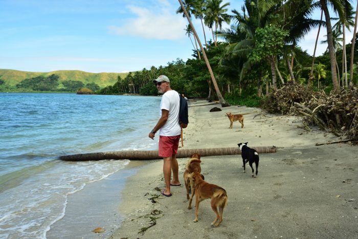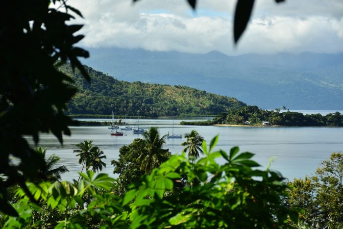 Vi lämnade Savusavu tidigt om morgonen för att ta oss öster ut. Med friska passadvindar som vanligtvis är sydostliga hade detta kunnat vara en skumpig färd. Nu motorerade vi i platt vatten och lätt bidevind de 45 nm till viken Viani Bay.