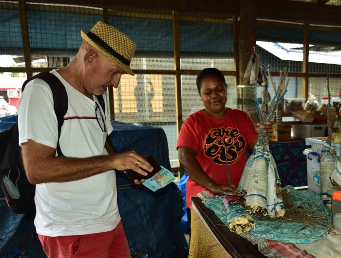 När vi tillfrisknade och vindarna såg fördelaktiga ut, provianterade vi och handlade sånt vi kan tänkas behöva för ungefär 3 veckor. Förutom de vanliga matvarorna köpte vi Waka-rötter. Enligt fijiansk tradition ska vi som besökare framförallt på avlägsna öar och byar, möta byns ledare, presentera oss, överlämna en gåva och be att tillfälligt få bli upptagna i bygemenskapen, för att få ankra, snorkla och vandra. Ceremonin heter Sevusevu och den är inte valfri. Gåvan vi ska överlämna är waka-rot. Roten finns inte att köpa ute på öarna, så det gäller att planera hur många öar/byar man kommer att besöka och köpa med sig rötter så att det räcker. Det tog lite googling för att förstå skillnaden mellan de olika begrepp som används i samband med den mystiska plantan. Någon hade sagt att vi skulle köpa med oss Waka en annan nämnde Kava och när en tredje person nämnde Yaqona, startade vi en utredning. Vi kom fram till följande. Själva plantan heter Piper methysticum på latin, känd som Kava på svenska och engelska, på fijianska heter den Yaqona medan roten kallas Waka. Solklart. Det kommer säkert att klarna ytterligare när vi väl får göra vår första sevusevu. Vi har redan fått prova på den dryck som tillreds av wakaroten och ingår i ceremonin. Den är lätt narkotisk med en ”intressant smak”, kan man säga.