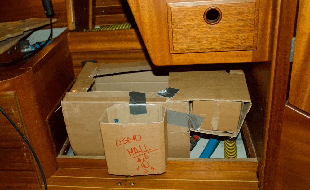 Plan A var att Osmo skulle få plats under handfatet i badrummet. Bra tänkt, men för trångt. Det är inget fel på plan B heller där utrymmet under navigationsplatsen utnyttjas. Det kräver lite ombyggnad och vi får hitta en annan plats för skorna som brukar samlas där. Men det fixar vi.